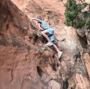 After we returned to our campsite, Sean motivated Sebastian and Fletcher to climb up the steep, red walls that ensconced our site. The slick rock that makes the Moab area famous is very grippy thus allowing you to scale angles that would normally not be achievable.