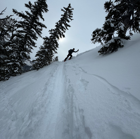 But this line is steep and is very consequential when the avy danger is high. There are chutes and cliffs so if the top part slides, a avy could take out the entire width of the north face with no where to hide.